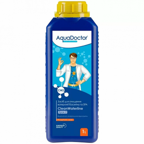 AquaDoctor CW CleanWaterline Крок 2 — це спеціалізований кислотний гель для очищення ватерлінії басейну та СПА від усіх типів мінеральних і солевих відкладень. Він ефективно видаляє вапняний наліт, сліди іржі та інші мінеральні забруднення, не пошкоджуючи хромовані та нікельовані поверхні.